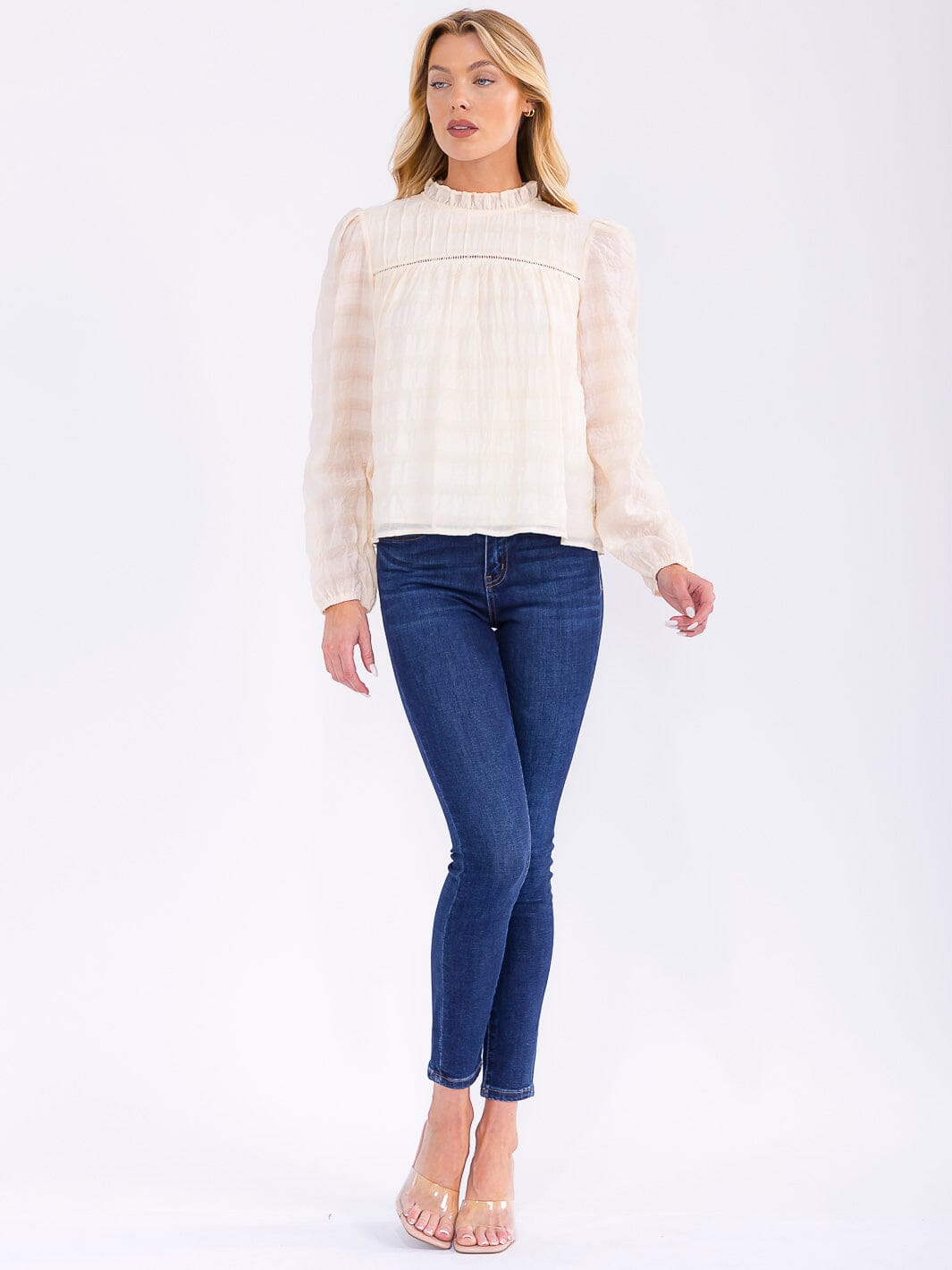 WOMEN'S LONG SLEEVE MOCK NECK DETAILED BLOUSE
