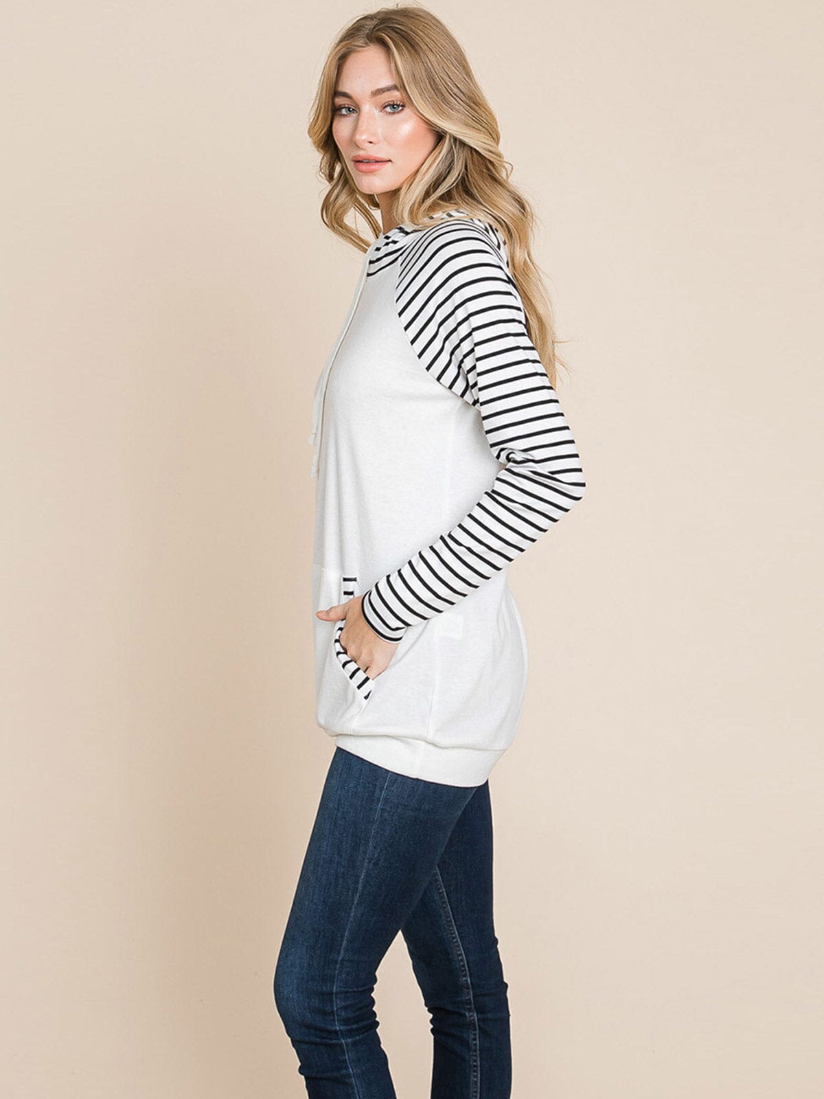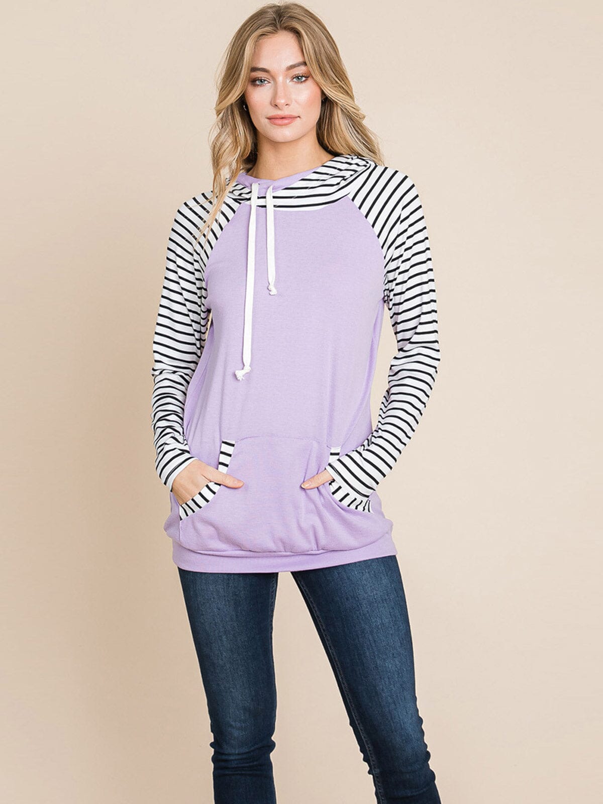 Complete the look:Our Women's Long Sleeve Front Pocket Hooded Stripes Colorblock Top is a bestseller with boutiques for a reason. Its comfortable yet stylish design makes it a hit with customers, and its versatile nature allows for endless styling options. With a low cost per unit and high reorder reliability, this top offers a great markup potential for retailers. Plus, its trendy design and eye-catching display value make it a must-have for any boutique owner looking to attract customers and boost sales.