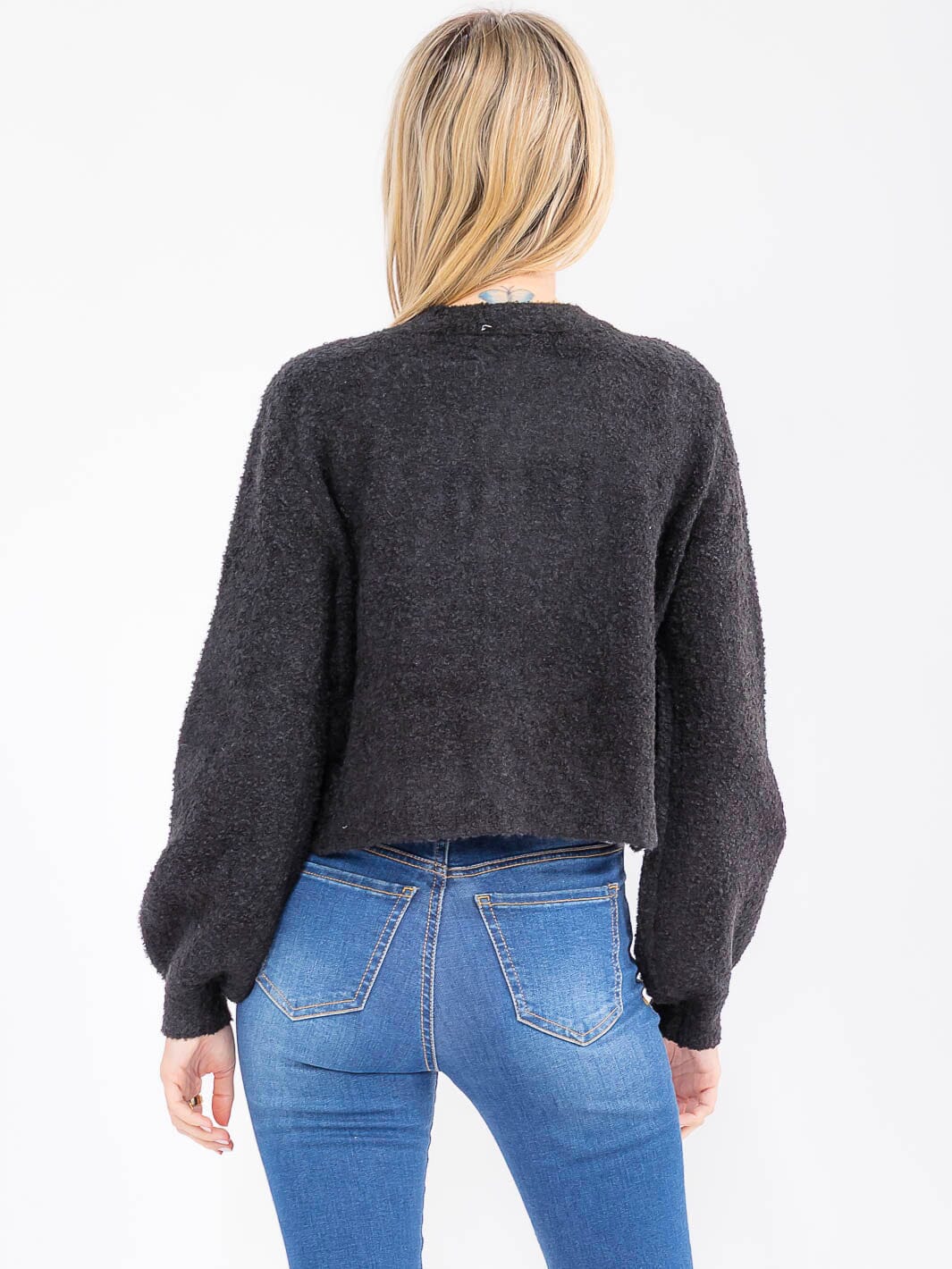 Soft acrylic fabric, flattering fit, versatile styling, ideal for layering, perfect for fall, boutique favorite, easy-care material.