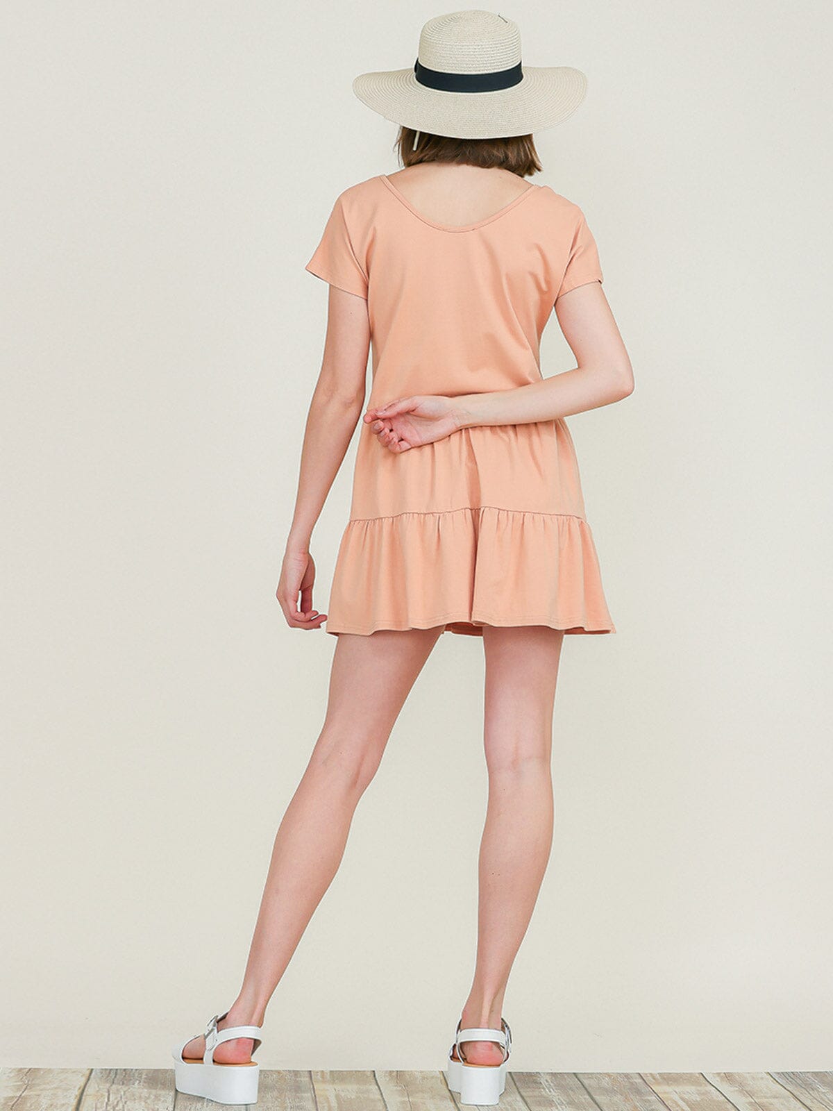 Discover the effortlessly chic Women's V-Neck Tiered Tunic that's a staple for contemporary wardrobes. Crafted with a soft blend of cotton and spandex, this mini dress offers comfort and style with its tiered silhouette and short sleeves. Perfect for layering or as a standalone piece, it's a favorite for springtime outings or casual summer gatherings. A must-have for retailers seeking a bestseller with boutiques.
