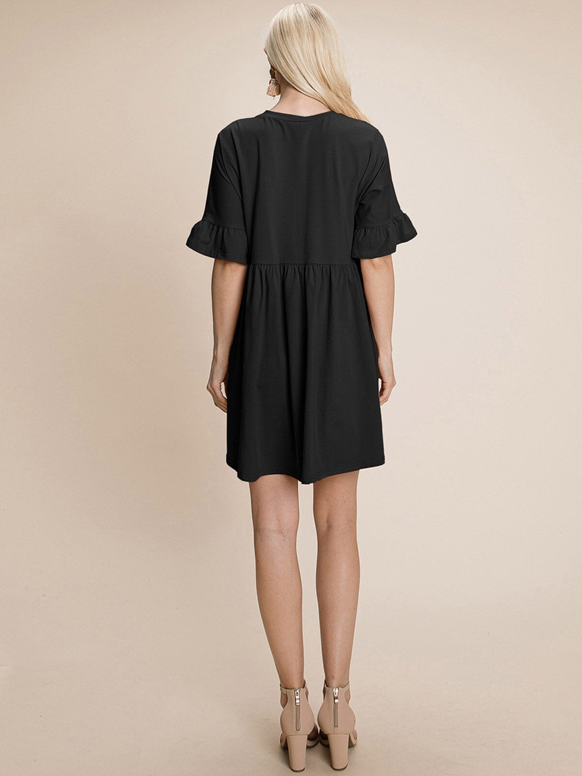 WOMEN'S SHORT RUFFLE SLEEVE LOOSE FIT TUNIC MINI DRESS