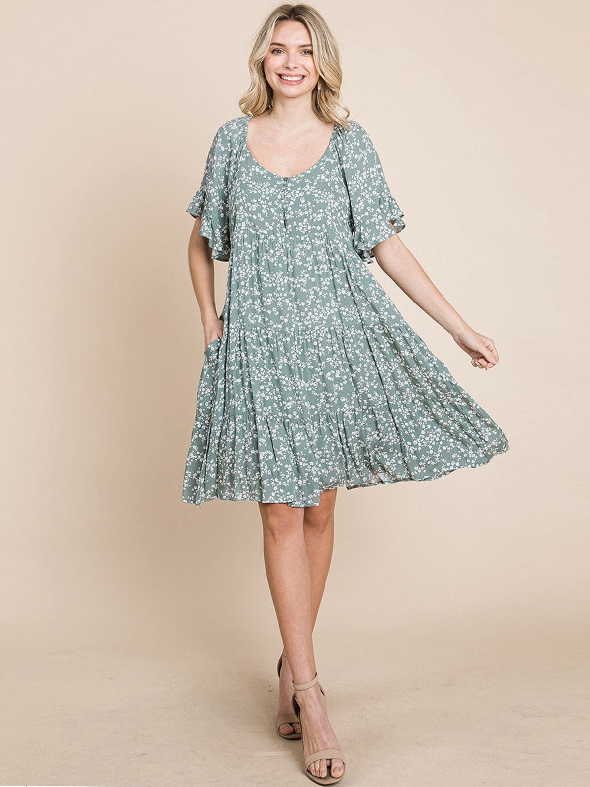 Discover the chic appeal of our short-sleeved floral tunic dress, a must-have for contemporary boutiques. Crafted from lightweight rayon, this dress boasts a flattering mini silhouette with practical front pockets, making it perfect for casual outings or upscale events. Retailers will appreciate its versatile styling options, whether paired with summer sandals for a day look or layered with a jacket for a breezy evening ensemble.