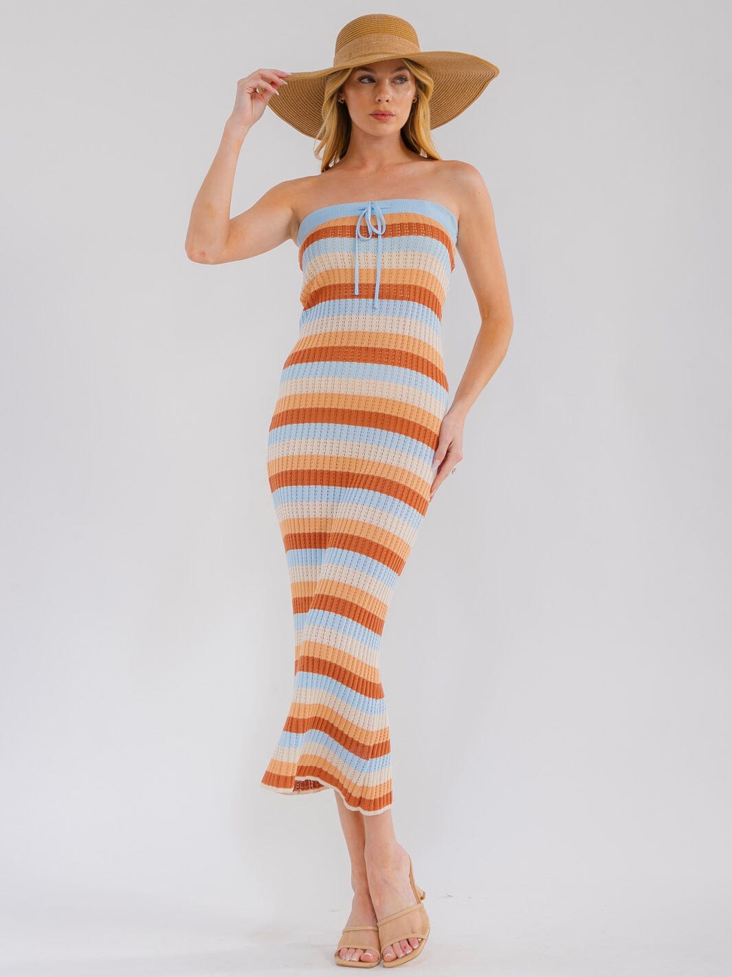 This ribbed colorblock tube maxi silhouette is an instant bestseller with boutiques seeking the latest in contemporary women's trends. Crafted from soft 100% viscose, the sleeveless bodycon shape hugs the figure with a stretchy, flattering fit, while bold colorblocking adds visual intrigue. The ankle-grazing length and strapless neckline make it ideal for warm-weather events, summer festivals, and chic layering with jackets or dusters. Perfect for display on mannequins or styled in window features, this trend-forward piece offers versatile merchandising opportunities.