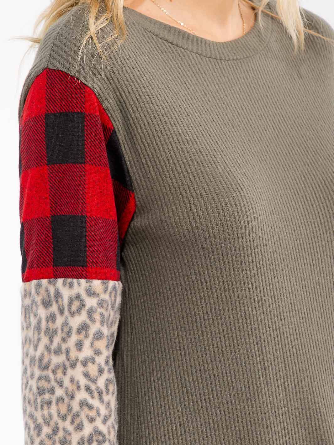 WOMEN'S LONG SLEEVE COLORBLOCK CONTRAST PRINT LOOSE FIT TOP