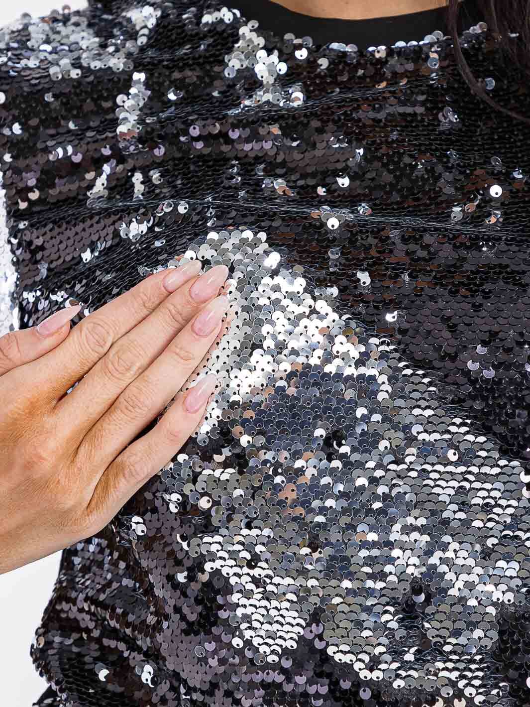 Features:Rayon-spandex blend, sequin-embellished, flattering silhouette, versatile styling options, perfect for holiday season, easy care instructions, boutique bestseller.