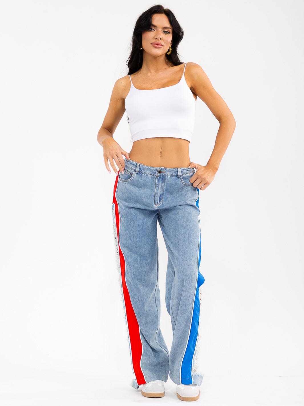 Complete the look:These stylish Colorblock Denim Contrast Pants are a must-have for fashion-forward retailers. Their unique design and comfortable fit offer excellent markup potential and quick turnover. With a strong trend appeal and eye-catching color options, these pants are perfect for in-store displays and online merchandising. Capitalize on the growing demand for contemporary denim and ensure customer satisfaction with this reliable reorder item.