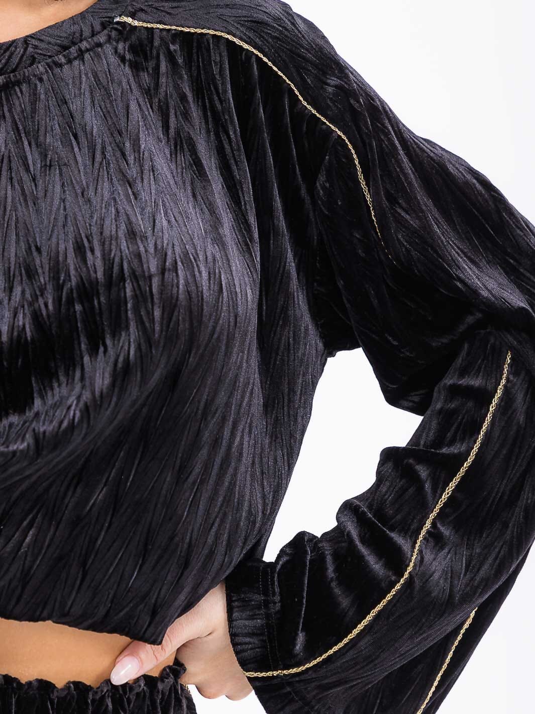 WOMEN'S LONG SLEEVE TOP & ELASTIC WAIST MIDI SKIRT VELVET DETAILED 2PC. SET