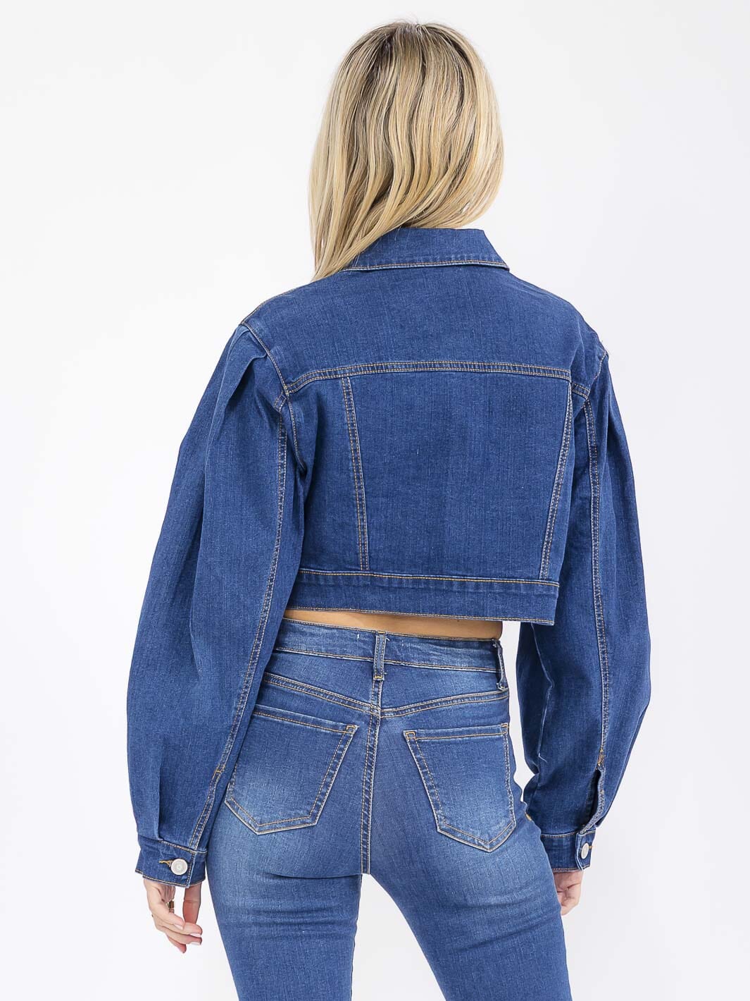WOMEN'S LONG SLEEVE BUTTON CLOSURE FRONT POCKETS STRETCH DENIM JACKET