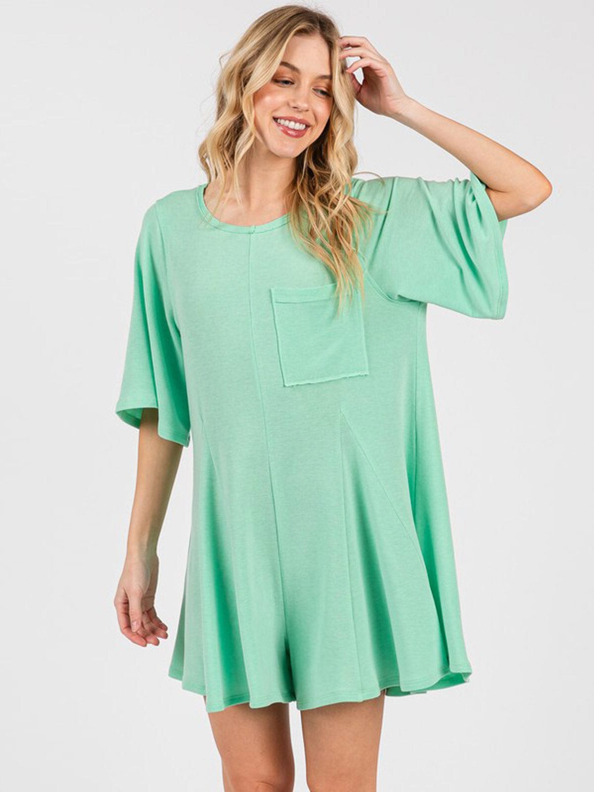 Step into effortless style with this women's short-sleeve romper featuring a flattering front pocket detail. Designed with a soft, stretch-blend fabric, this piece offers a relaxed fit and easy movement—ideal for warm-weather wardrobes. The casually polished silhouette, combined with versatile colorways, makes it a go-to for boutiques seeking elevated basics and everyday bestsellers. Perfect for resort getaways, casual weekends, or trend-driven layering in contemporary retail settings.