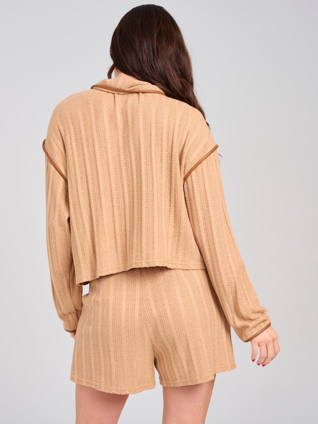 Elevate your inventory with these PU Contrast Button-Front Knit Shorts—an on-trend essential for contemporary womenswear collections. Designed with a flattering high-rise silhouette, these shorts fuse soft rayon-rich knit with a sleek faux leather contrast for eye-catching texture and modern appeal. The functional button closure and tailored fit make them a standout for styling, while their versatile length is ideal for warm-weather edits or layered transitional looks. Perfect for trend-forward boutiques and online retailers seeking must-have bottoms for spring and summer styling.