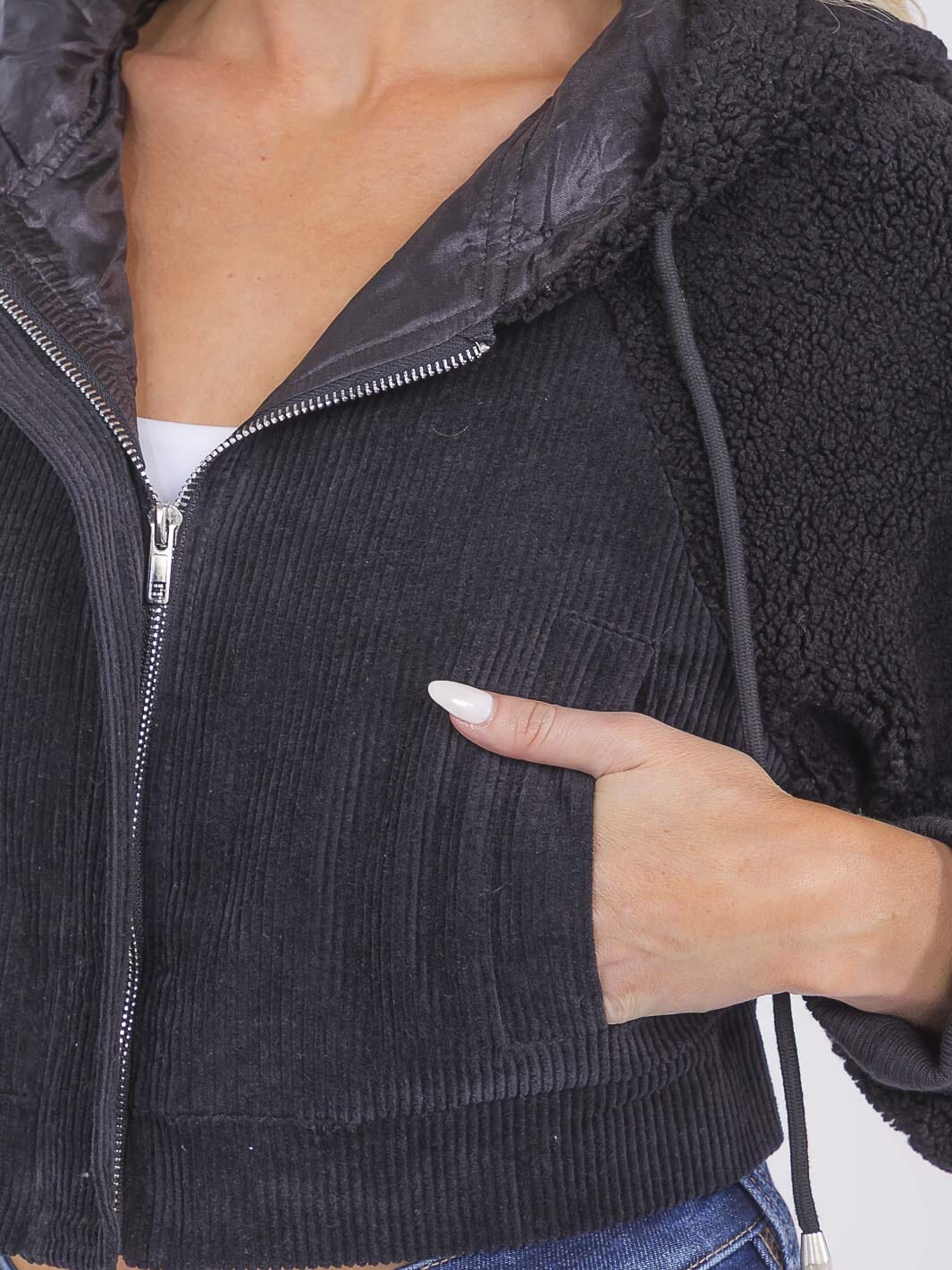 Complete the look:This hooded zipper jacket is a key item for any fashion-forward collection. Its high demand among boutiques is driven by its attractive price point and trend-right design, offering excellent markup potential. Known for its fast reorder rates, this jacket is ideal for in-store displays and online showcases, ensuring retailers can capitalize on its contemporary appeal and versatility.