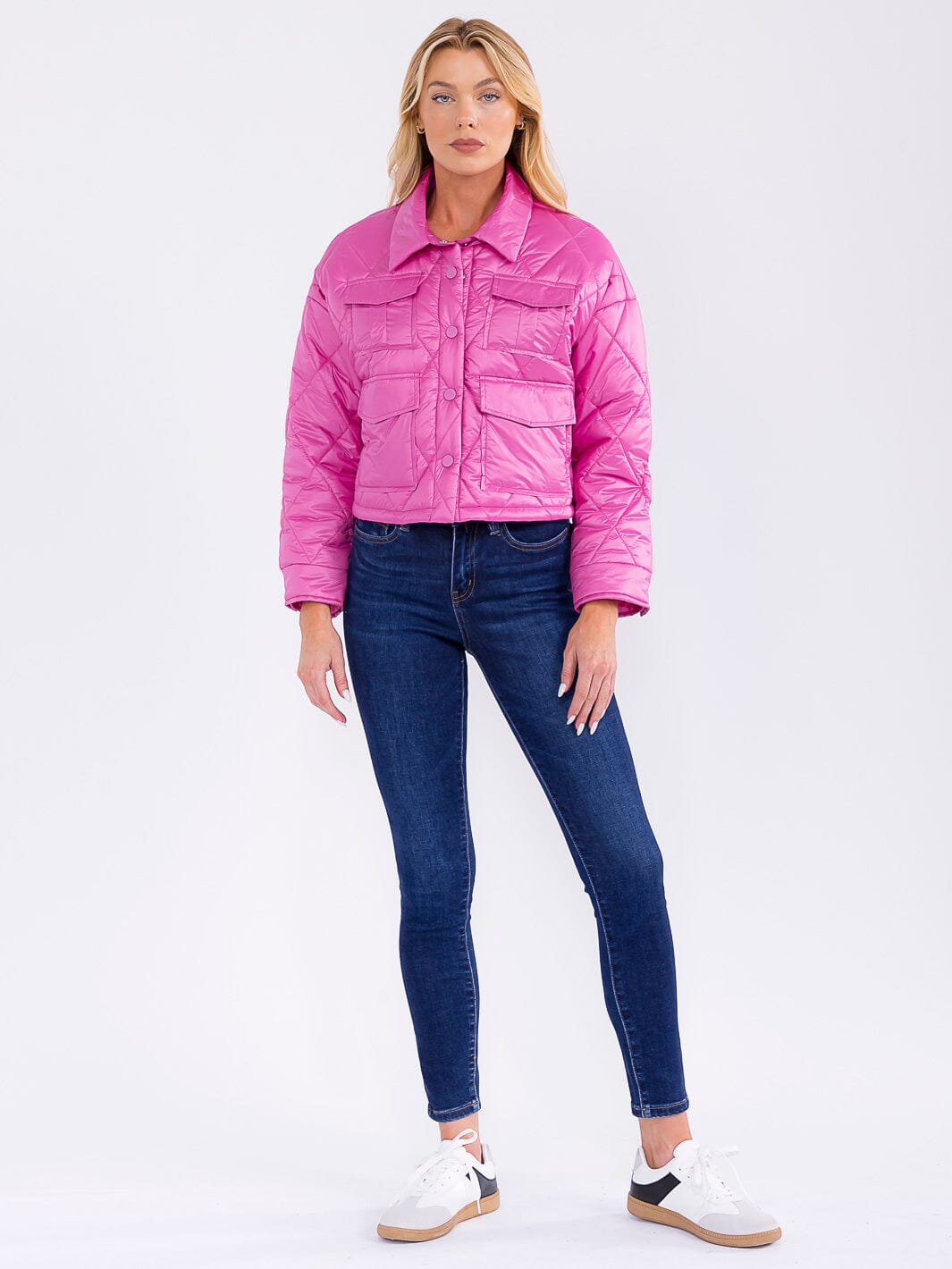 Elevate your outerwear selection with this women’s quilted puffer jacket featuring long sleeves, convenient front pockets, and a modern cropped fit. Crafted from lightweight, easy-care polyester, this versatile layering piece offers trend-forward appeal in bold colorways, making it a standout for contemporary boutiques and online retailers. Its sleek silhouette pairs effortlessly over knits, tees, or dresses for cool-weather styling, while practical button closures and pockets add everyday ease. Stock up on this bestselling seasonal staple to keep customers coming back for must-have fall and winter essentials.