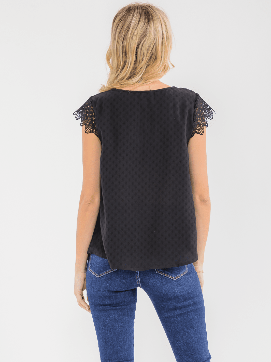 Features:Lightweight polyester, flattering ruffle sleeves, intricate crochet design, versatile styling options, ideal for spring and summer, easy care hand wash, boutique bestseller appeal.