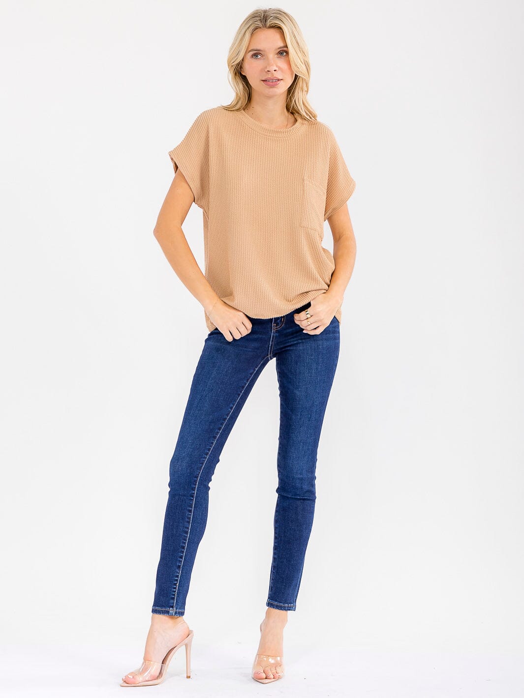 Complete the look:The textured ribbed short sleeve top with pocket is a proven favorite for boutiques seeking high-margin, easy-to-merchandise essentials. Its on-trend fabrication and inclusive fit drive repeat orders and robust sell-through, while the USA-made quality appeals to conscious consumers. With consistent sizing packs and a wide palette, this staple is perfect for curated displays and cross-merchandising in both storefronts and online shops, maximizing revenue and customer loyalty.