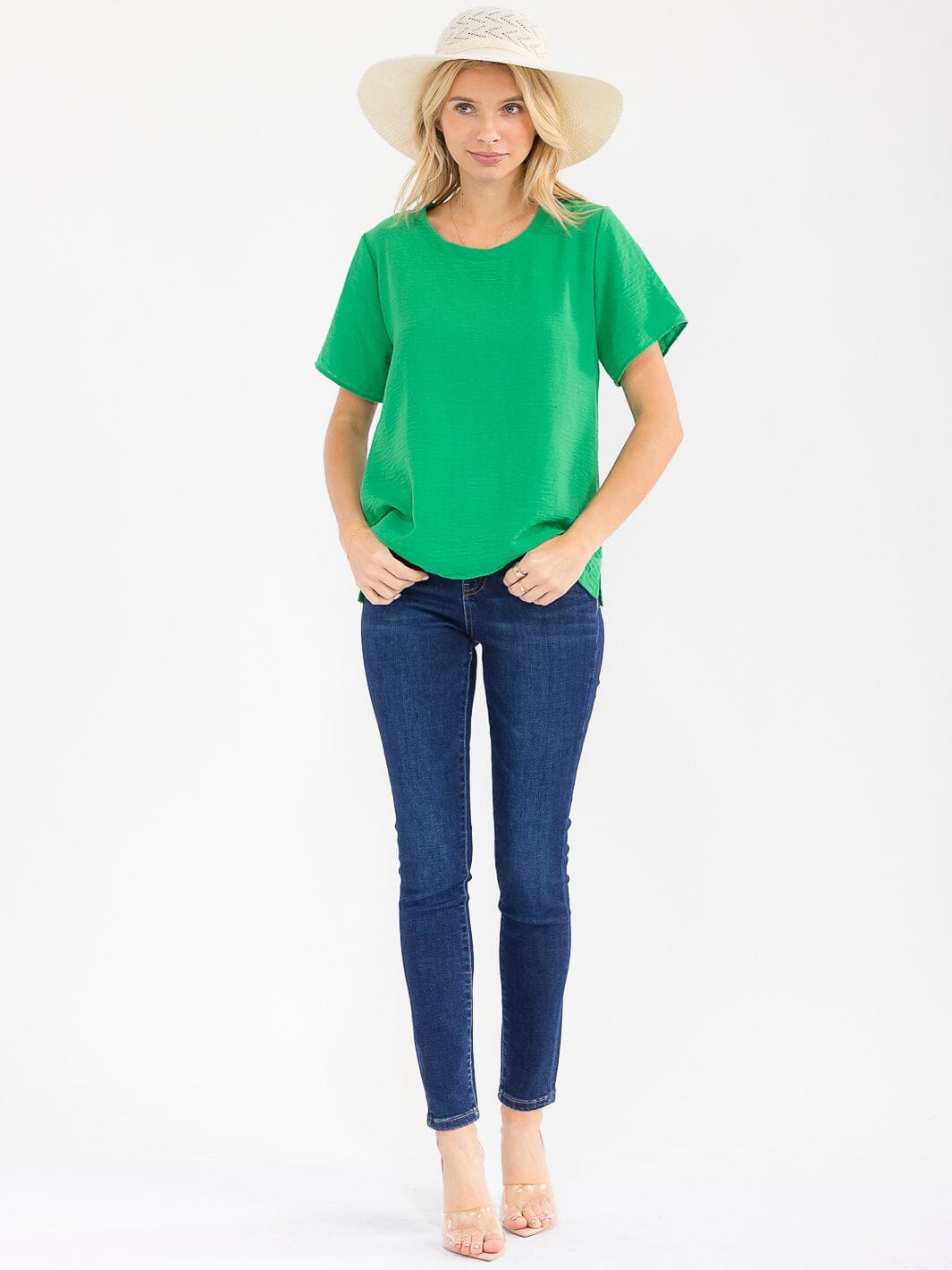 Elevate your contemporary collection with this chic women's solid short-sleeve top. Crafted in lightweight 100% polyester, this easy-to-style blouse features a classic silhouette that flatters a variety of body shapes, making it a top choice for trend-conscious retailers. The versatile design transitions seamlessly from workday to weekend, while the vibrant color range, including fuchsia, green, royal, and orange, offers fresh appeal for every season. Ideal for boutiques seeking a high-turnover staple, this top pairs effortlessly with both dressy and casual ensembles.