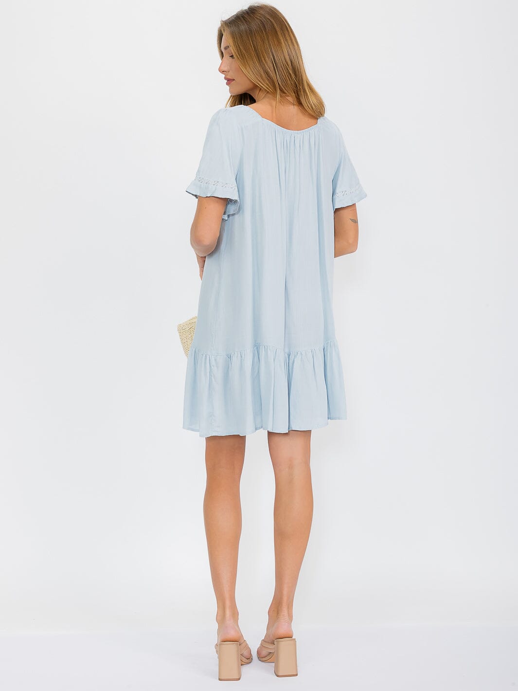 WOMEN'S SHORT SLEEVES BUTTON CLOSURE TUNIC MINI DRESS