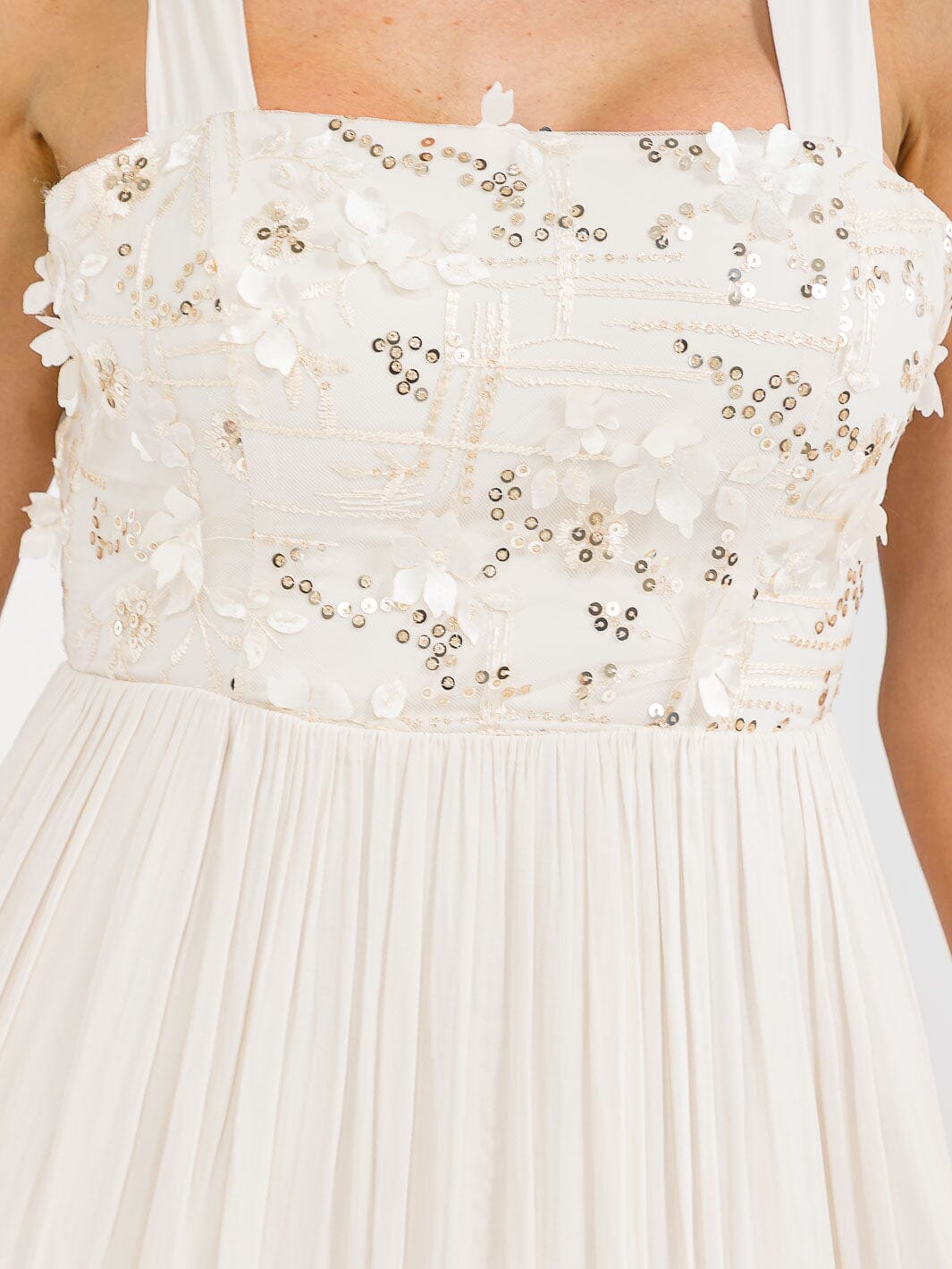 Introducing a stunning maxi dress adorned with delicate floral sequins and convenient front pockets, perfect for boutique owners looking to elevate their summer collection. This stylish sleeveless piece combines aesthetic appeal with practicality, making it an ideal choice for casual outings, garden parties, or resort vacations. The breathable fabric ensures comfort without compromising on style, while the flattering silhouette makes it a versatile addition to any woman's wardrobe.