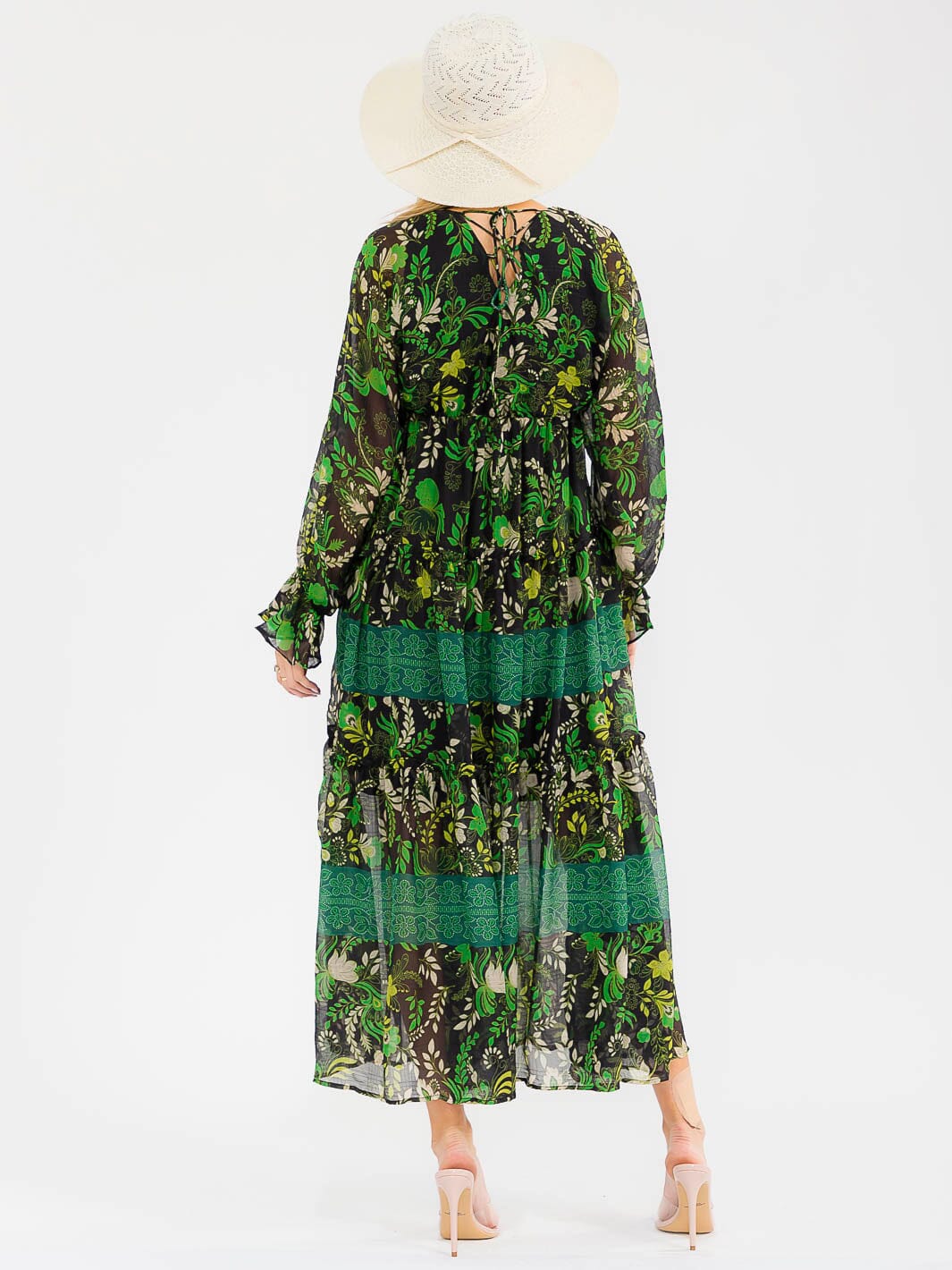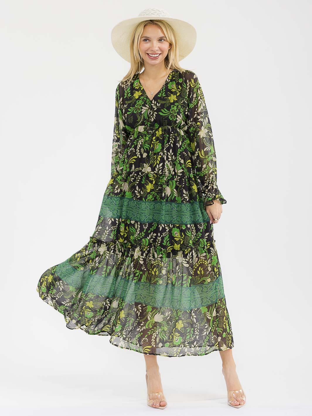 Elevate your boutique collection with this floral print maxi dress featuring long sleeves and a flattering elastic waist. This must-have piece showcases a flowy silhouette crafted in lightweight, fully lined polyester with a soft hand feel. The V-neckline and full-length design strike the perfect balance between effortless elegance and everyday comfort, making it ideal for brunches, garden parties, or destination occasions. A proven bestseller with boutiques, this dress adds a fresh, trend-forward statement to contemporary women's assortments.