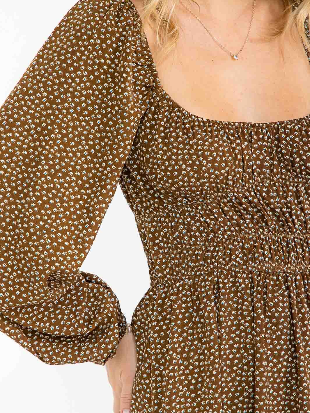 Features:Square neck, elastic waist, floral design, long sleeves, lightweight polyester, suitable for machine wash, versatile styling options.