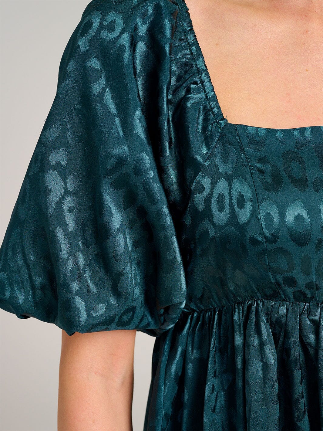 Features:Polyester-spandex blend for comfort, fit & flare silhouette, square neckline, puff sleeves for added style, versatile for day-to-night transitions, ideal for spring and summer collections, popular choice among fashion boutiques.