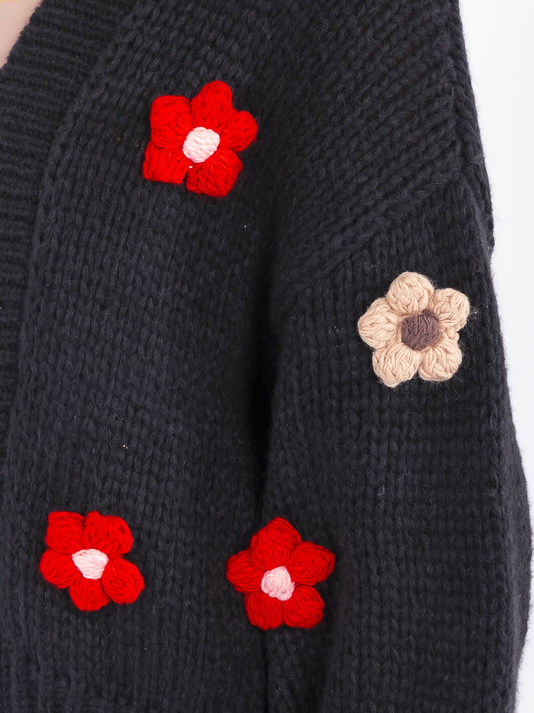 WOMEN'S LONG SLEEVE FLORAL KNIT OVERSIZED CARDIGAN