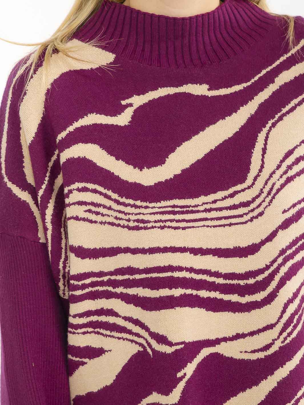 Features:Soft viscose-polyester blend, mock neck design, trendy colorblock pattern, ideal for fall and winter, versatile styling options, appealing to modern boutiques, high reorder potential.