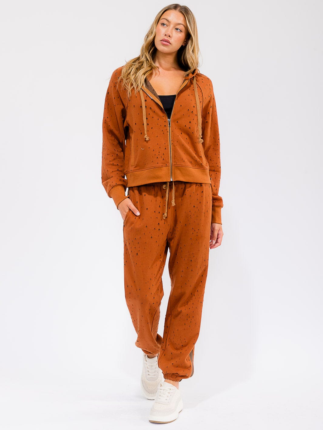 Soft cotton blend fabric, relaxed fit, zipper front closure, front pockets for convenience, perfect for cool-weather layering, versatile for casual or activewear, popular with boutique owners.