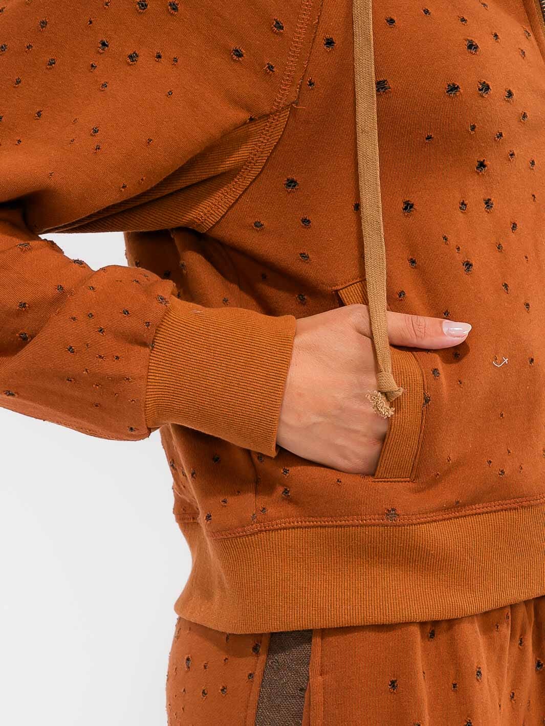 Experience the urban charm of our Women's Hooded Distress Jacket, a trend-forward layering piece perfect for activewear collections. Crafted from a soft cotton blend, this jacket features a modern silhouette with zipper closure and front pockets for added functionality. Ideal for casual outings or a sporty ensemble, it's a must-have for retailers aiming to offer versatile and stylish options.