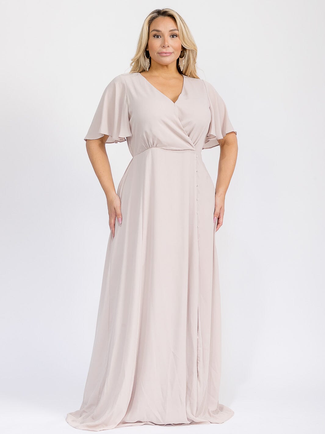 Complete the look:The plus-size surplice maxi dress with a frontal slit is a favorite among boutique owners looking to captivate their clientele. Its elegant design and flattering fit make it an easy choice for upscale events, offering excellent markup potential and consistent demand. The gown's trend-forward appeal and versatile styling options ensure it remains a top pick for both in-store displays and online promotions, making it a reliable reorder item for fashion-forward retailers.