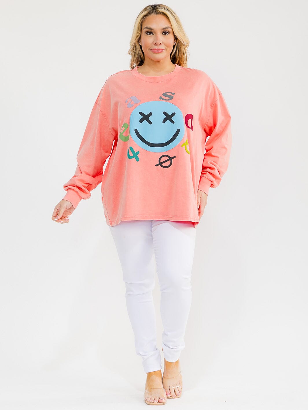 Introducing our trendy plus-size graphic top, a must-have for fashion-forward boutiques. Crafted from 100% cotton, this long-sleeve shirt offers comfort and style with a vibrant graphic design. Ideal for casual outings or as a statement layering piece, it's a perfect addition to any retailer's collection. Its relaxed fit and soft fabric make it a bestseller with boutique owners looking to offer versatile and chic plus-size options.