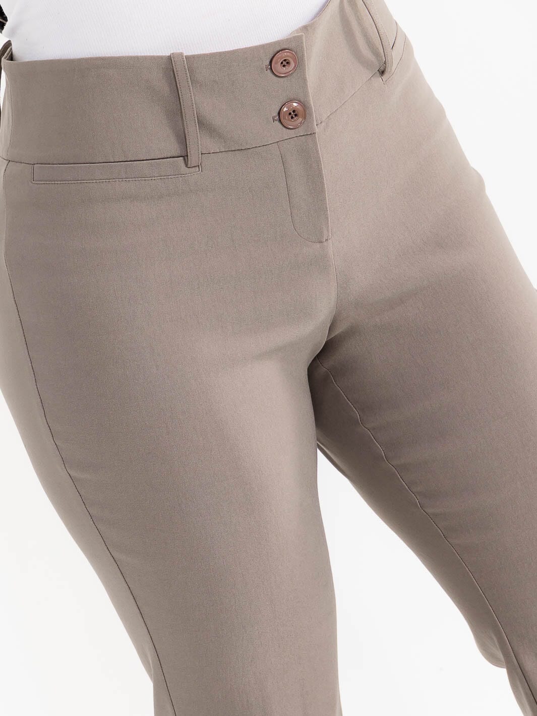Soft cotton-nylon stretch fabric, wide leg cut for a modern silhouette, secure button closure, versatile for work or casual settings, easy to hand wash and care for, available in extended plus sizing, popular for both spring and fall assortments