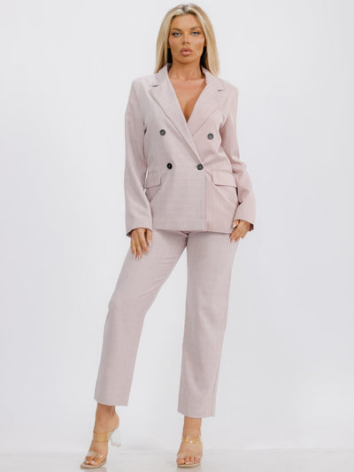WOMEN'S 3/4 SLEEVE CROP TOP & BELTED PANTS 2PC. SET