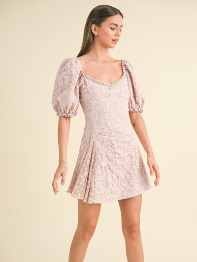 WOMEN'S SHORT PUFF SLEEVE FLORAL DETAILED MINI DRESS