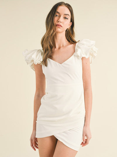 WOMEN'S SHORT RUFFLE SLEEVE SURPLICE BODYCON MINI DRESS