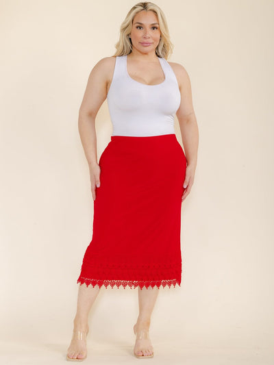PLUS SIZE ELASTIC WAIST CROCHET BOTTOM HEM MIDI SKIRT