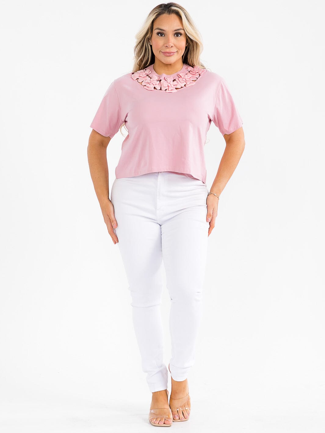 Complete the look:The plus-size floral neck accent blouse consistently draws boutique attention for its inclusive sizing, on-trend detailing, and margin-friendly price point. Retailers appreciate the reliable pack availability and color variety, making it ideal for restocking bestsellers and building cohesive seasonal collections. Its balanced blend of comfort, style, and profitability makes it easy to merchandise both online and in-store, ensuring repeat interest from plus-size shoppers seeking fashion-forward basics.
