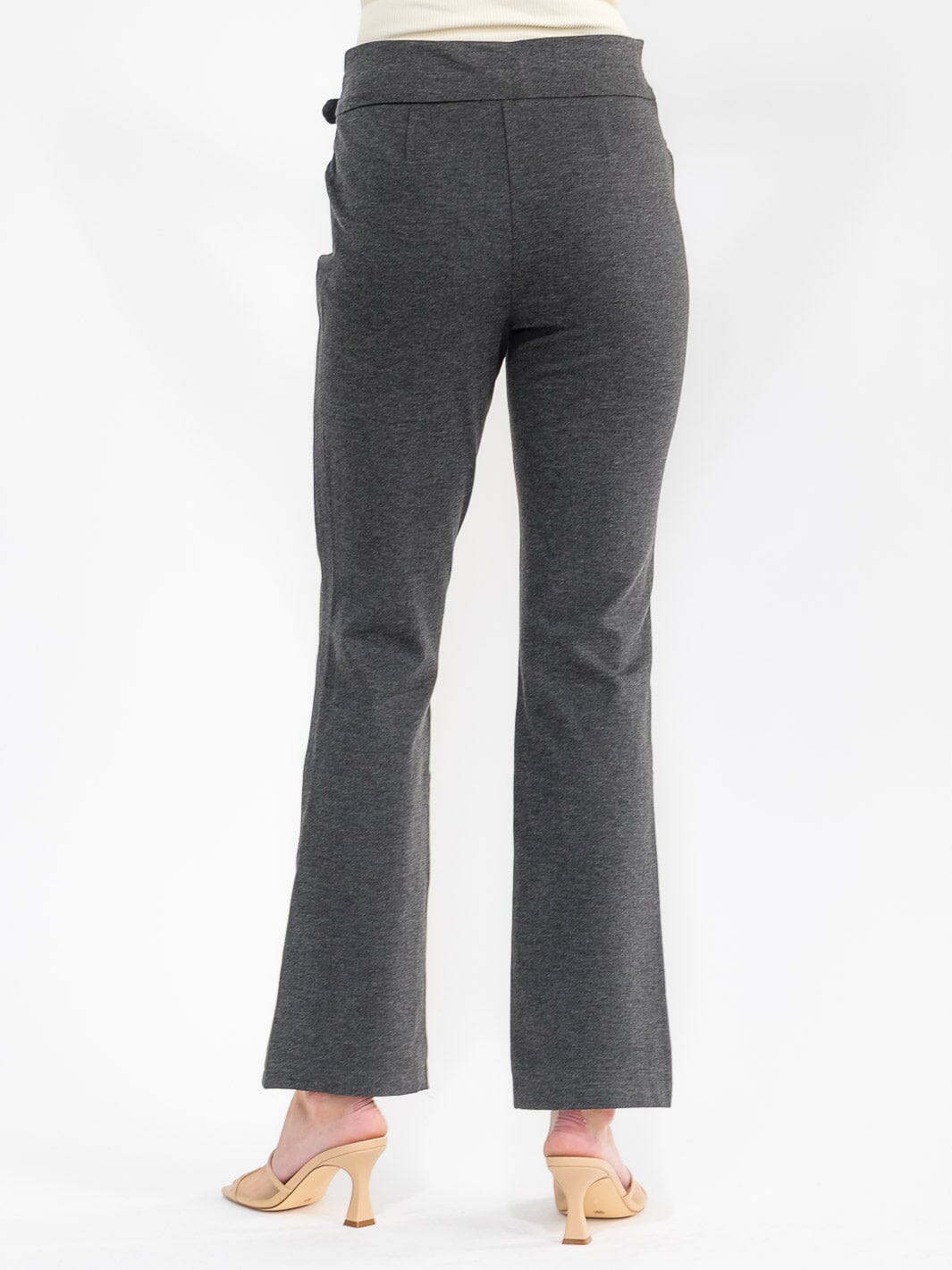 Stretchy fabric blend, comfortable elastic waistband, fashion-forward bell-leg design, versatile styling options, machine-washable convenience, ideal for year-round wear, popular choice for boutiques.