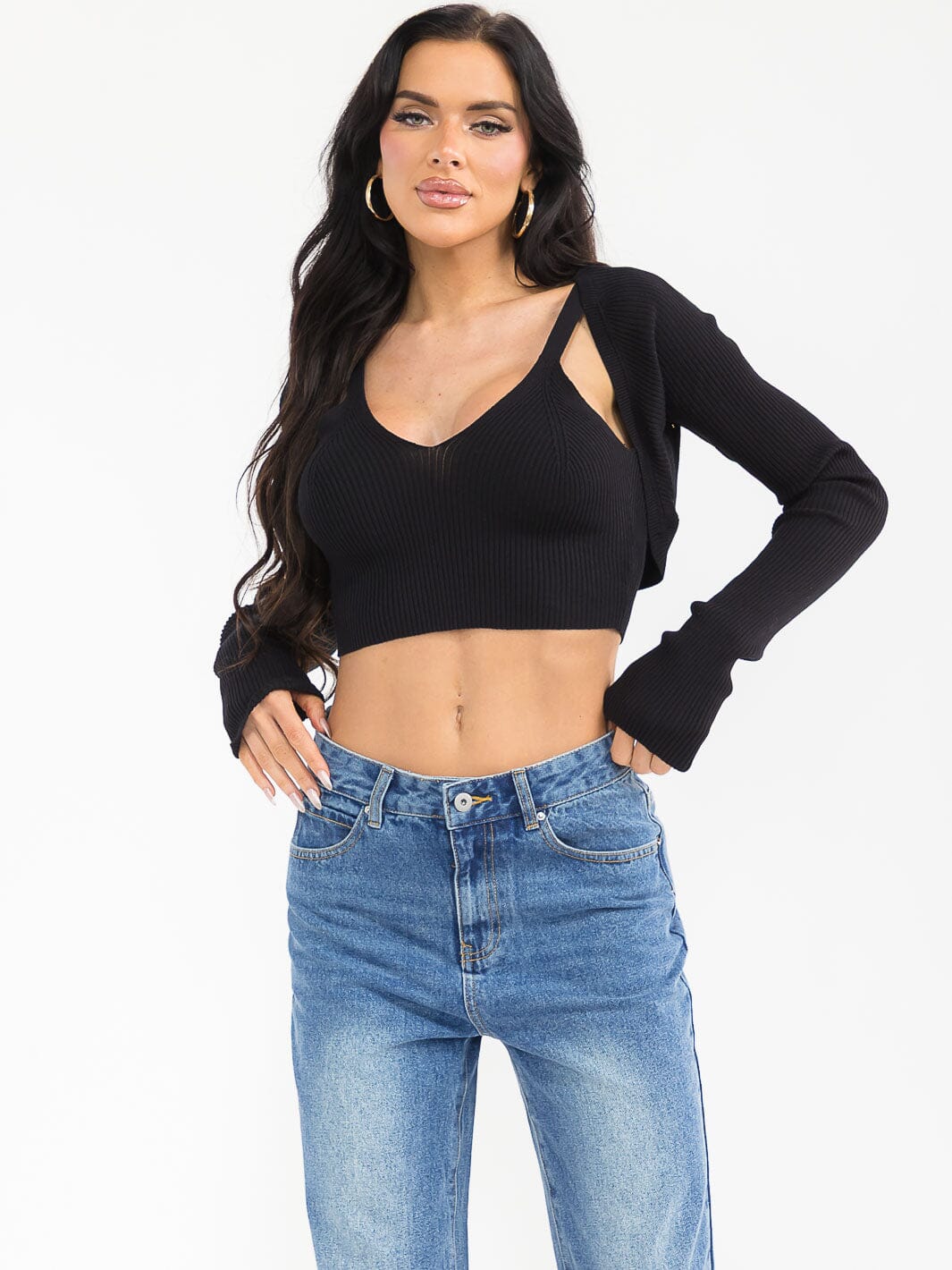 Features:Soft viscose-polyester ribbed knit, cropped silhouette, versatile layering set with cardigan and tank, lightweight and breathable, fitted yet flexible stretch, ideal for transitional seasons, easy-care hand wash.