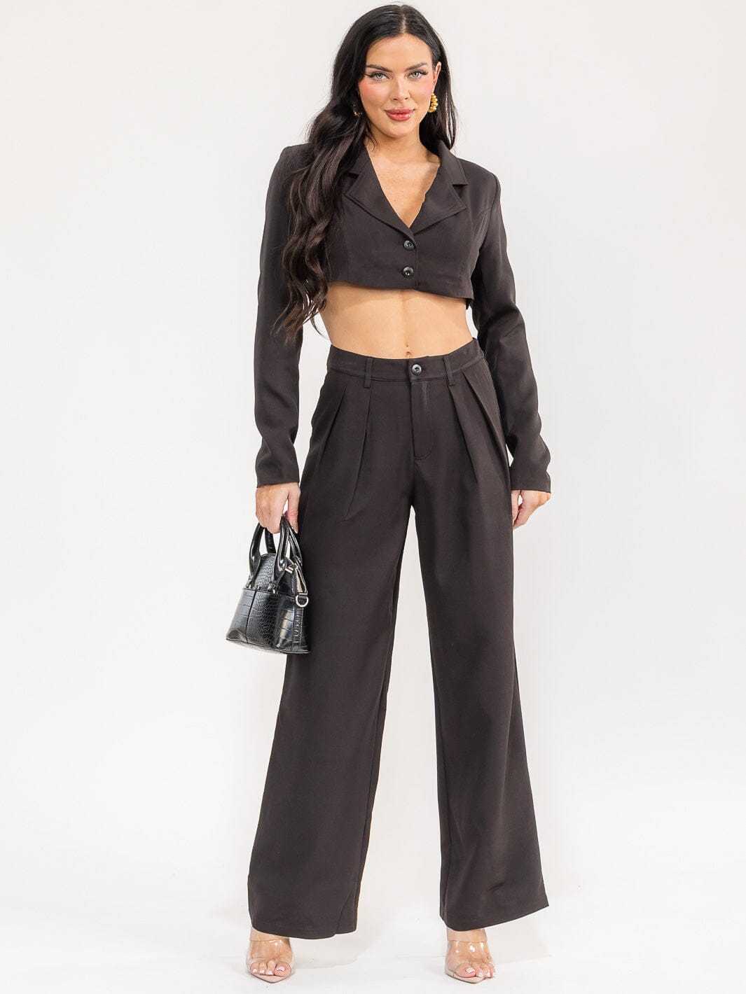 Explore the chic elegance of our Women's Long Sleeve Crop Top with Button Closure Pants Set. This two-piece ensemble features a sleek crop top that pairs effortlessly with high-waisted pants, creating a flattering silhouette perfect for both casual and formal occasions. Crafted from a soft polyester-spandex blend, this set promises comfort and a perfect fit, making it a must-have for sellers seeking a trendy addition to their collections.