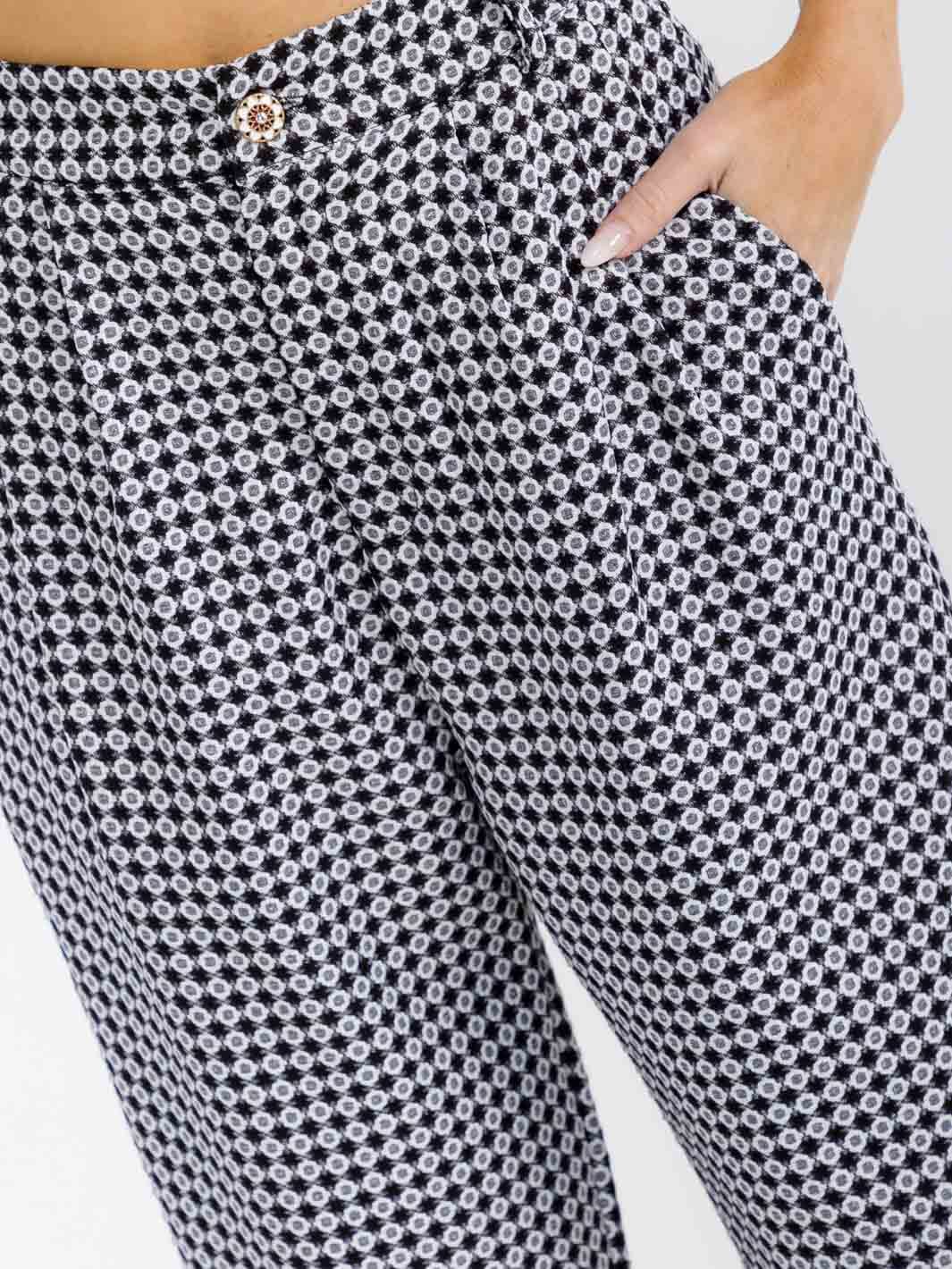 Introducing our Women's Colorblock Print Straight-Leg Pants, an essential for fashion-forward retailers. Crafted from 100% cotton, these pants feature a sleek straight-leg silhouette and a trendy colorblock design with button closure and pockets. Ideal for casual outings or chic summer looks, these pants are a must-have addition to any boutique's collection.