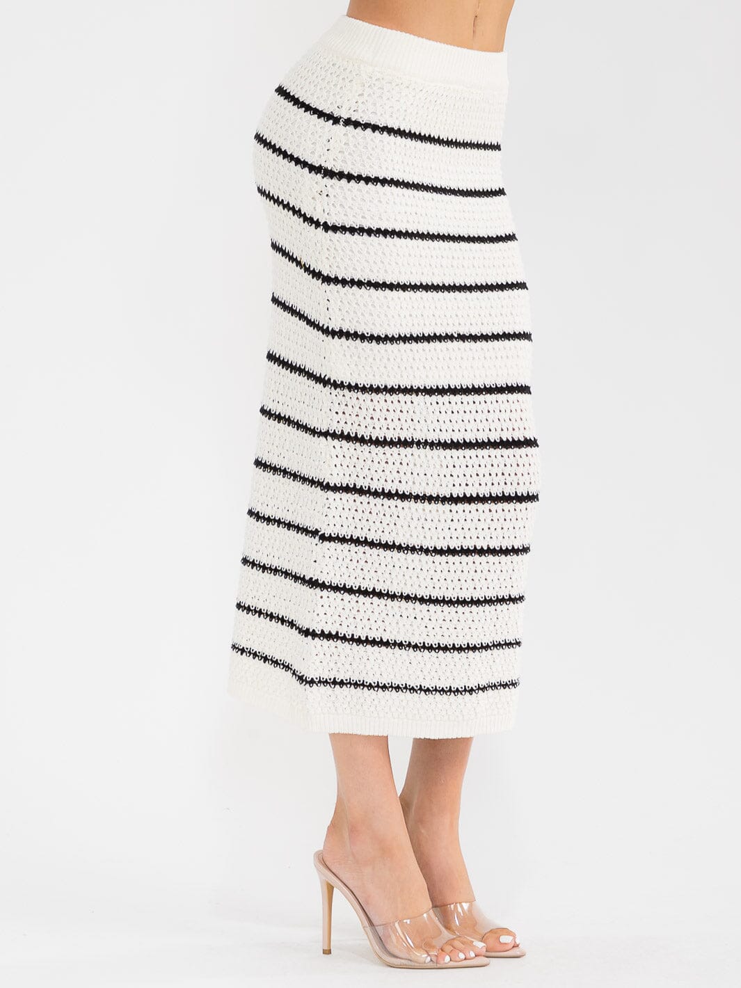 WOMEN'S ELASTIC WAIST COLORBLOCK KNIT MAXI SKIRT