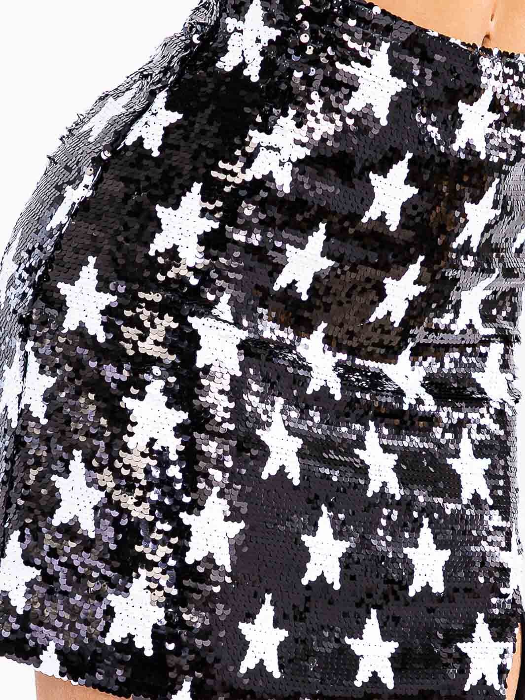 Experience the sparkling allure of our Sequined Star Mini Skirt, a show-stopping piece perfect for any fashion-forward collection. Crafted with glimmering stars and a sleek zip-up design, this skirt offers a chic silhouette that effortlessly elevates any outfit. Ideal for holiday events or night outings, it's a versatile addition to your store's contemporary favorites.