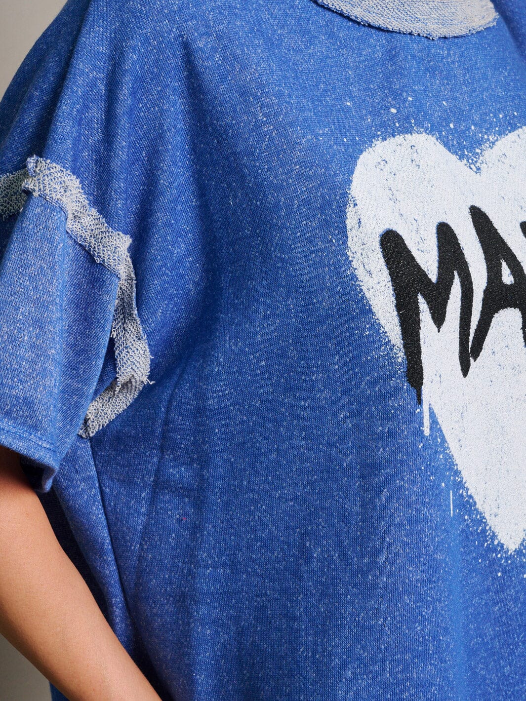 Features:Lightweight and breathable fabric, relaxed fit for comfort, trendy graphic design, versatile styling options, perfect for spring and summer collections, easy-care hand wash, popular among boutique shoppers.