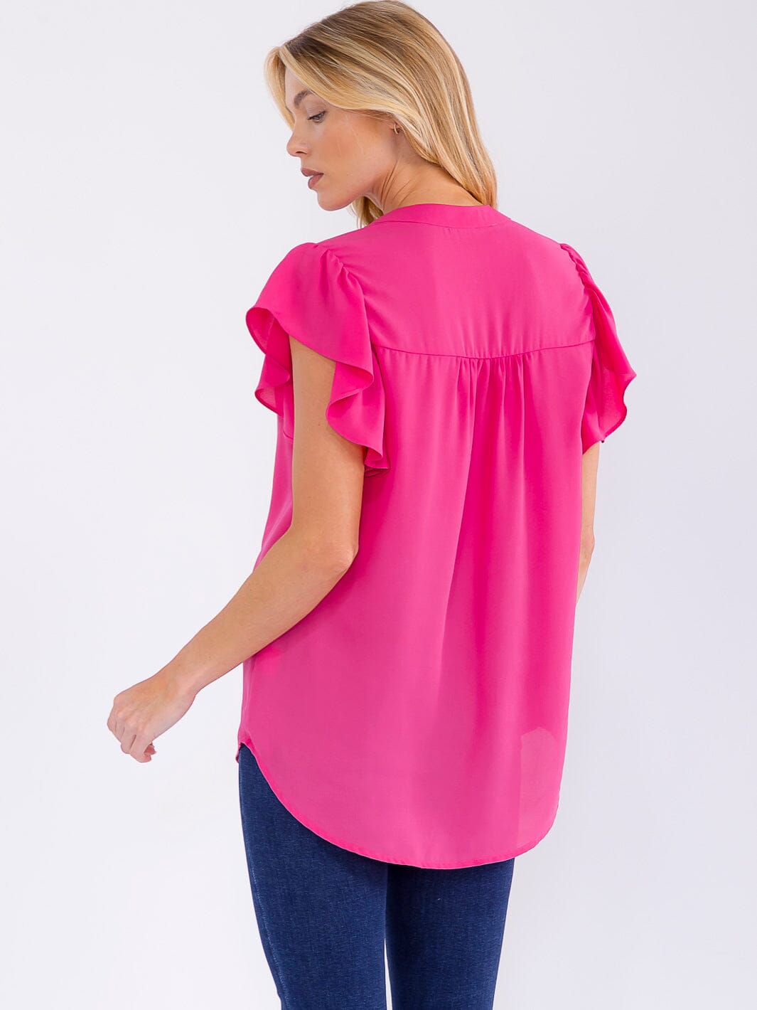 Refresh your boutique’s selections with this short sleeve button front blouse, featuring an on-trend high-low hem and a modern, easy fit. Crafted from durable polyester, this blouse boasts a polished drape and versatile silhouette, making it perfect for workwear edits or casual weekend styling. Statement colorways like fuchsia and royal add a lively pop to any display, while the elevated details invite layering under structured jackets or pairing with jeans for a contemporary look. A proven bestseller with boutiques, this must-have top brings both versatility and visual appeal for discerning fashion customers.