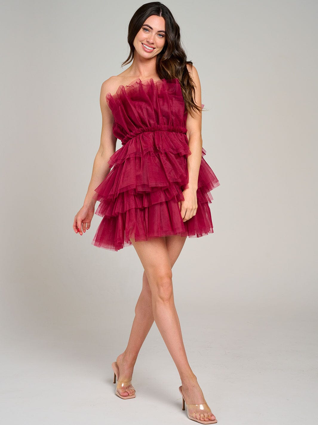 Features:Lightweight organza fabric, tiered ruffle design, tube silhouette, perfect for summer events, easy to style, eye-catching boutique appeal, comfortable fit.