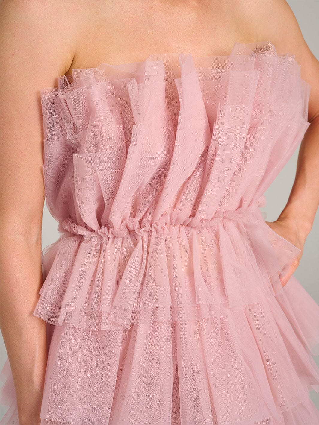 Introducing the chic sleeveless organza mini dress, a captivating piece that adds a touch of elegance to any wardrobe. With its tiered ruffle design and tube silhouette, this dress is perfect for summer events and trend-forward boutique collections. Made from lightweight polyester, it's a bestseller with boutiques looking to offer effortless style and sophistication.