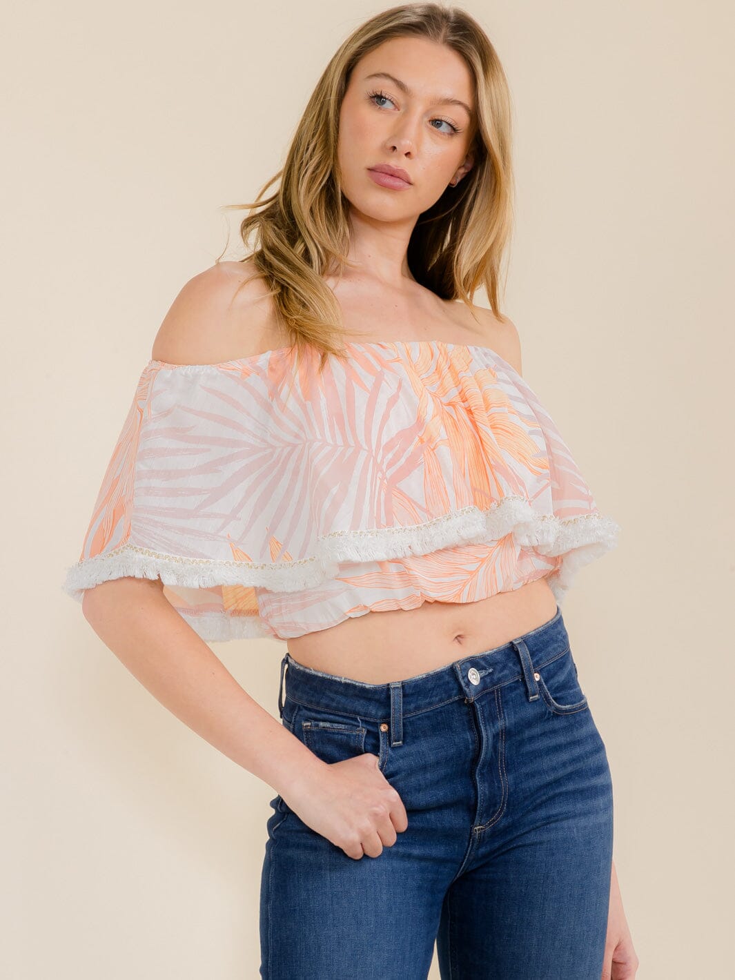 Complete the look:This chic off-the-shoulder crop top is a go-to piece for fashion-forward boutiques. Its competitive pricing and pack availability offer excellent markup potential, while the eye-catching print and versatile silhouette ensure it remains a reorder favorite. Ideal for both online and in-store displays, it effortlessly attracts attention, making it a must-have for retailers looking to capitalize on current trends.
