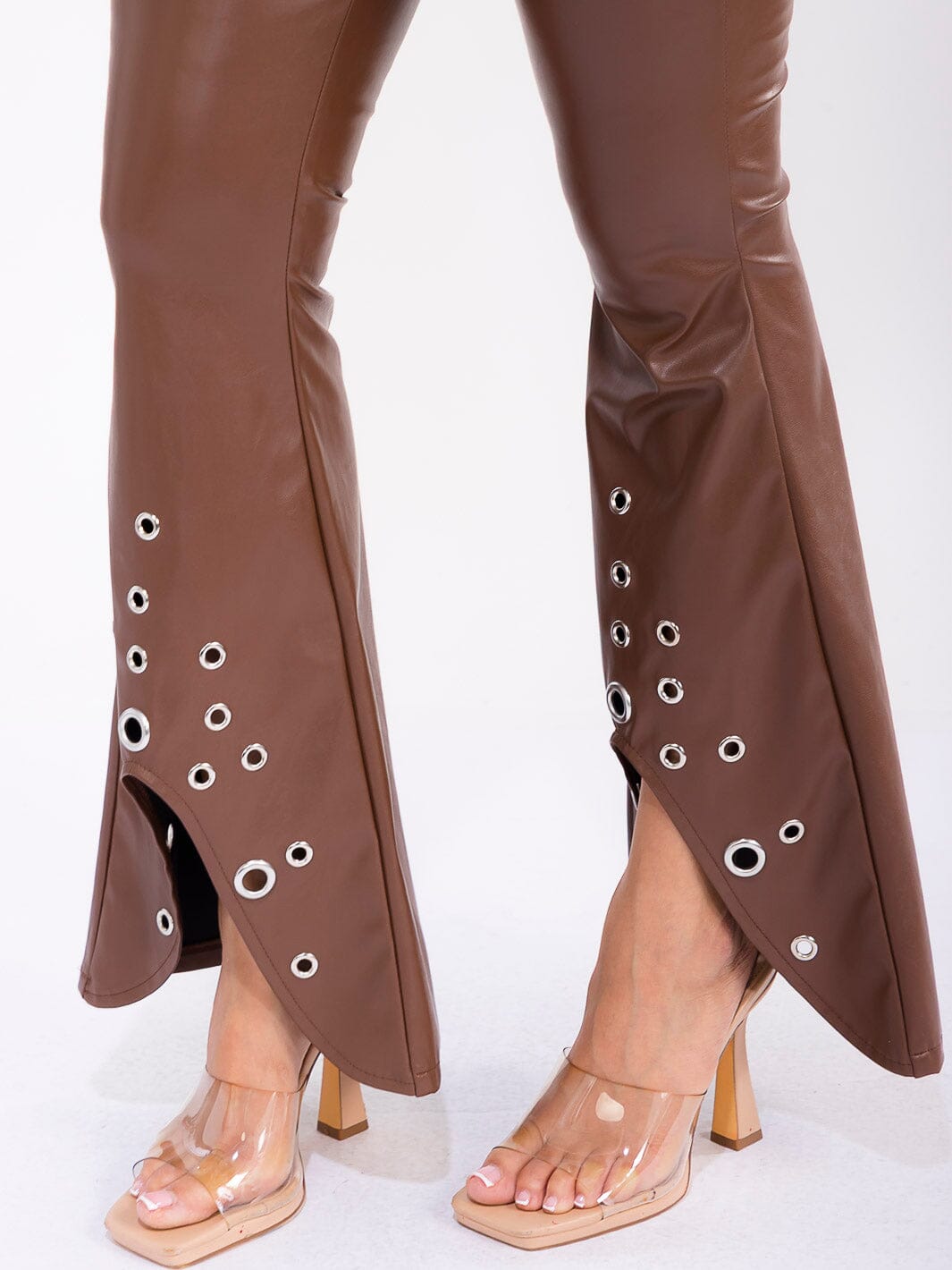 This stylish sleeveless crop top and pants set is crafted for the contemporary woman seeking a chic look. The pleather material offers a sleek finish, ideal for both casual outings and upscale events. The set includes a trendy crop top with a matching pair of button-closure pants, perfect for fashion-forward layering in the boutique market. A must-have for retailers, this ensemble promises to be a bestseller with its modern silhouette and versatile styling potential.
