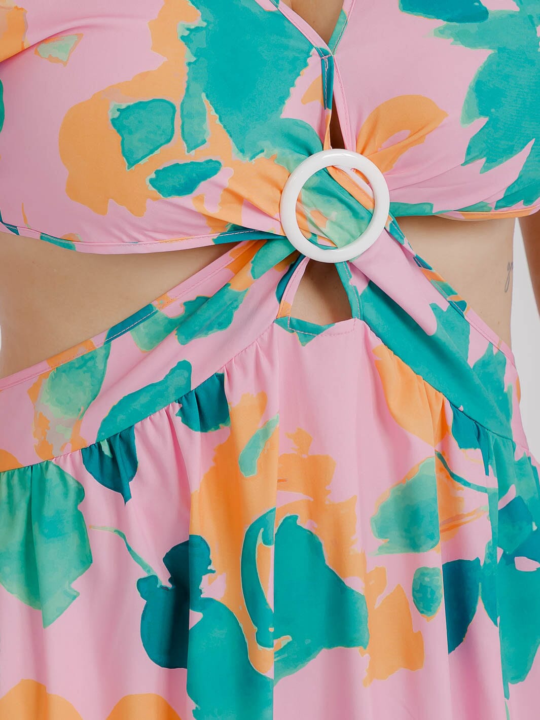 Discover the elegant charm of our floral maxi dress with side slits and a v-neck cut out, designed for the modern plus-size woman. This stunning piece is crafted from a soft polyester-elastane blend, offering both comfort and a flattering silhouette. Ideal for summer soirées or casual afternoon gatherings, this must-have item is a bestseller with boutiques due to its versatile styling options.