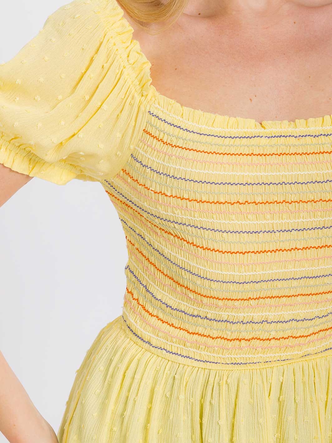 Elevate your boutique's inventory with this versatile and stylish women's peplum top. Crafted from 100% Rayon, this short sleeve smock features intricate Swiss multi detailing and a flattering peplum silhouette. Perfect for any occasion, from brunch to a resort vacation, this top seamlessly blends fashion and comfort.